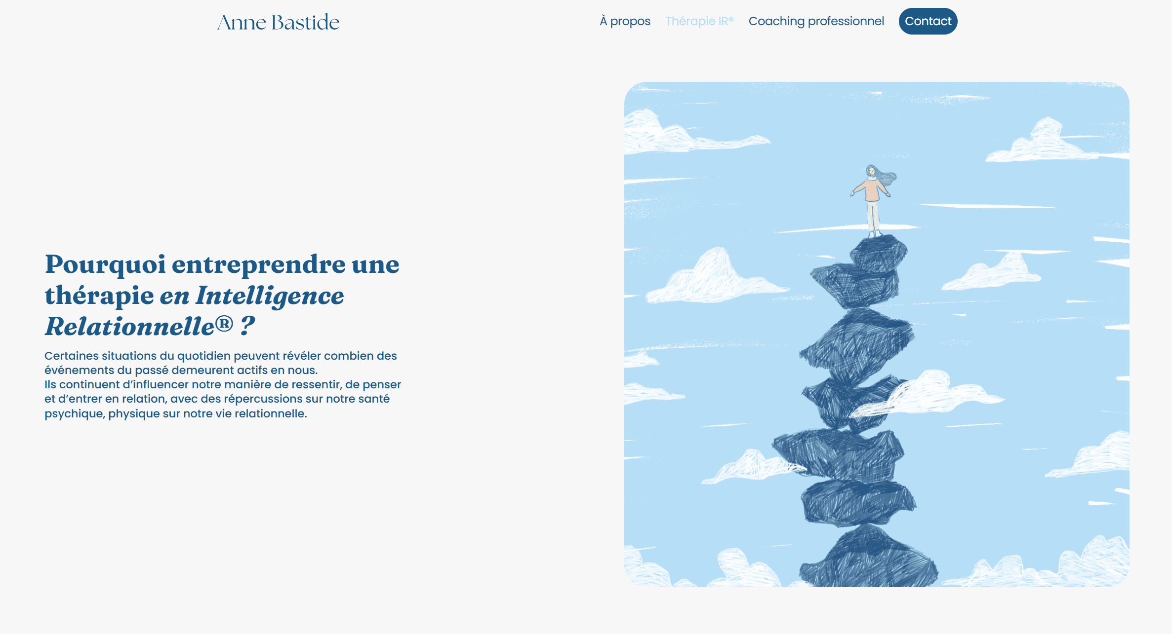 J'ai eu le plaisir de réaliser le site web d'Anne, thérapeuthe et coach professionnelle. de A à Z, elle m'a fait confiance pour comprendre son univers et son approche de la thérapie et du coaching, au travers d'illustrations.