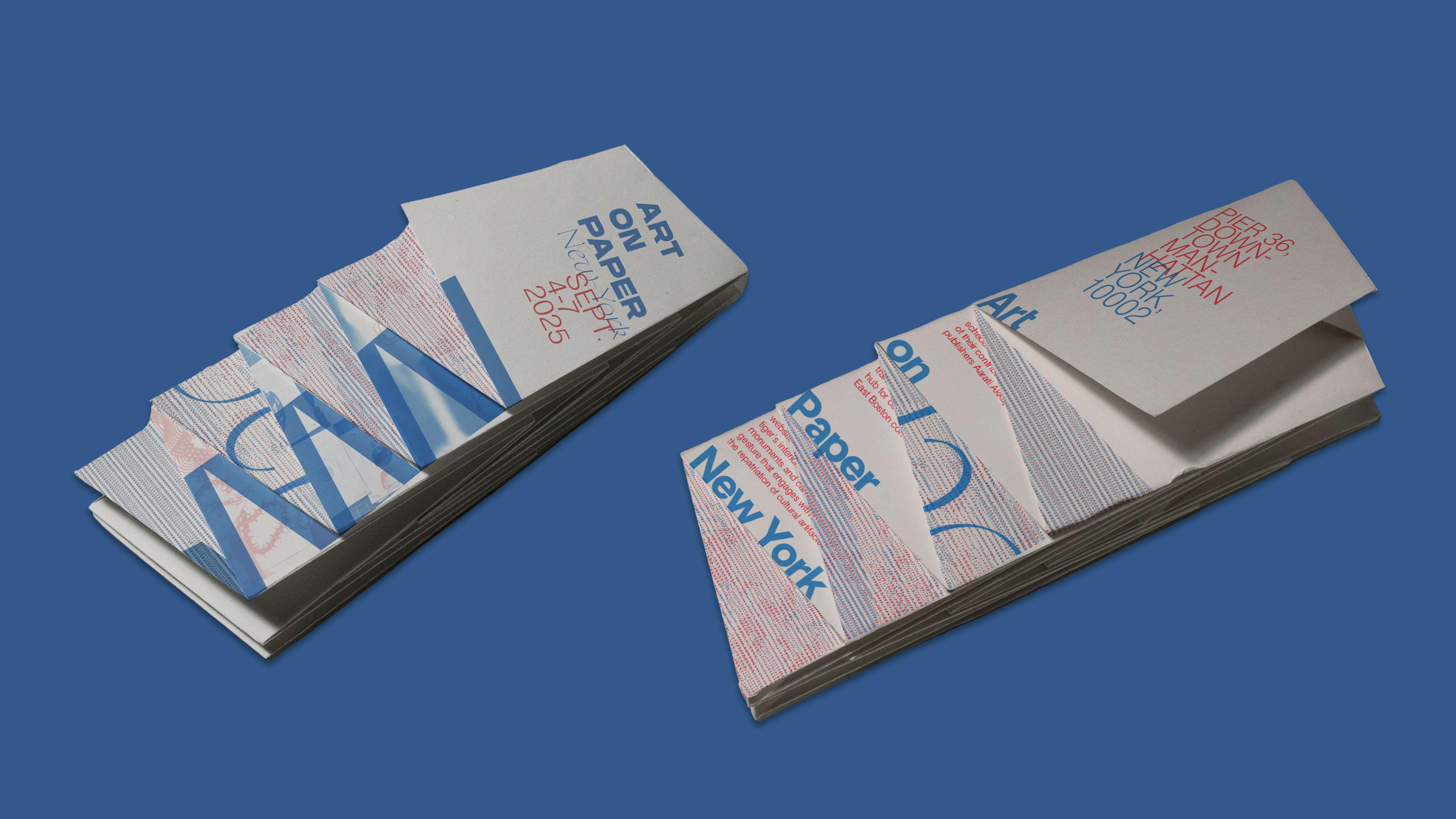 Art on Paper, c'est un événement New-Yorkais dédié à un médium spécifique, qui revient à Manhattan en 2027 avec plus de 85 galeries présentant le meilleur de l’art moderne et contemporain sur papier. Le challenge était de souligner le potentiel créatif du papier au travers du programme de l'événement. En me basant sur le thème de l'appartion/ disparition, j'ai créé un dépliant hors normes, qui dévoile les informations avec le principe de l'anaglyphe.